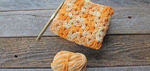 - Cut end and knot. Weave in ends. Enjoy your crocheted moss stitch chunky throw.