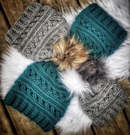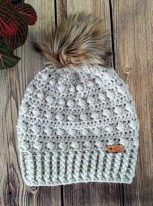 Don’t you love the trend of faux fur pom poms? They make a perfect finish to a stylish winter hat crochet pattern.
